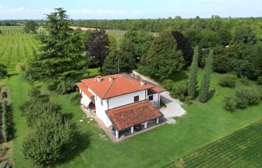 Das Anwesen ist von großzügigen Grünflächen und den Klängen der Natur umgeben. Dies macht diese Villa zu einem perfekten Rückzugsort für alle, die Ruhe und Privatsphäre suchen und dennoch die Annehmlichkeiten der nur wenige Autominuten entfernten Städte Ajello und Cervignano genießen möchten. Der Strand von Grado ist etwa 20 Minuten, die Autobahnmautstelle 10 Minuten und der Flughafen Triest 20 Minuten entfernt.
