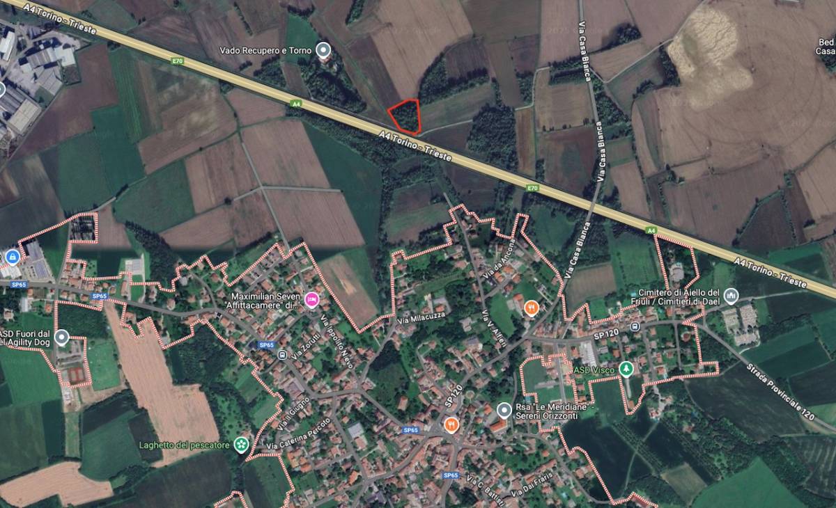 Aiello del Friuli - in località Colloredo (strada Aiello - San Vito al Torre) proponiamo terreno agricolo di superficie catastale pari a 3812 mq avente una qualità di Seminativi di 4.a classe, attualmente boschetto.