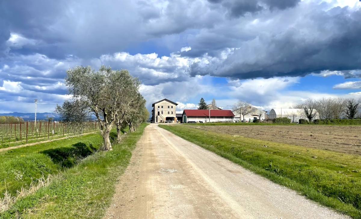 La proprietà è circondata da vigneti e ulivi e si raggiunge percorrendo una suggestiva strada di campagna che sbocca sulla viabilità principale verso Grado, dove passa anche la ciclabile Alpe Adria molto frequentata dai cicloturisti.