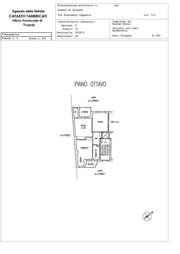 Trieste - In via Cappello, nel cuore del rione di San Vito, una delle zone residenziali più richieste di Trieste, proponiamo questo appartamento all’ottavo ed ultimo piano di una palazzina anni ’60 dotata di ascensore.