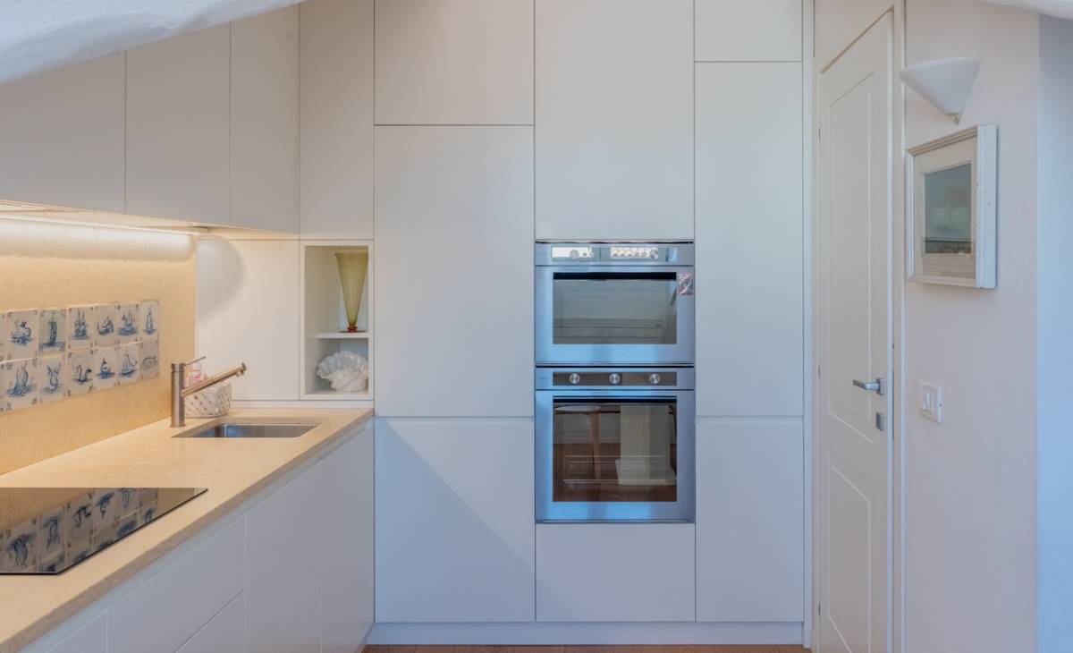 Gli interni, curati con materiali eleganti e finiture di pregio, si articolano in un salone molto ampio affiancato da una cucina progettata su misura fin nei dettagli con elettrodomestici di ultima generazione, per coniugare estetica e funzionalità ai massimi livelli.