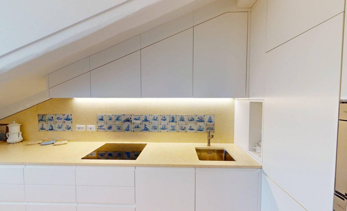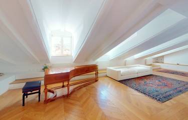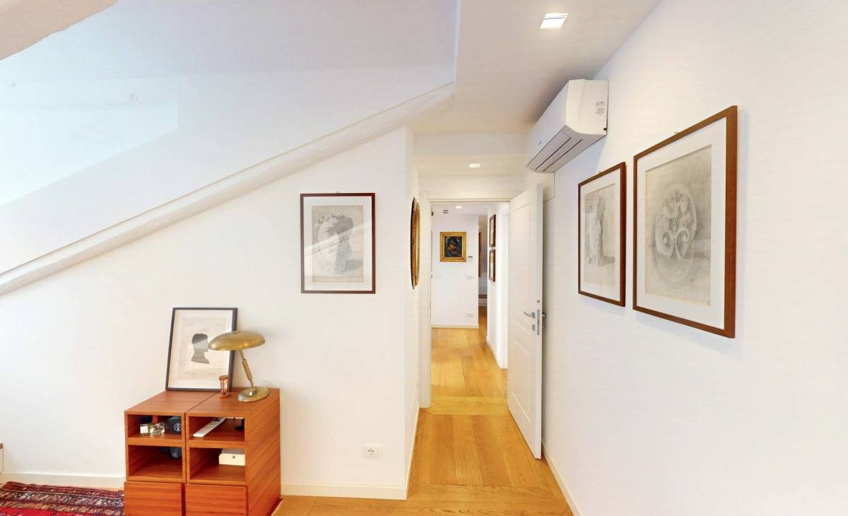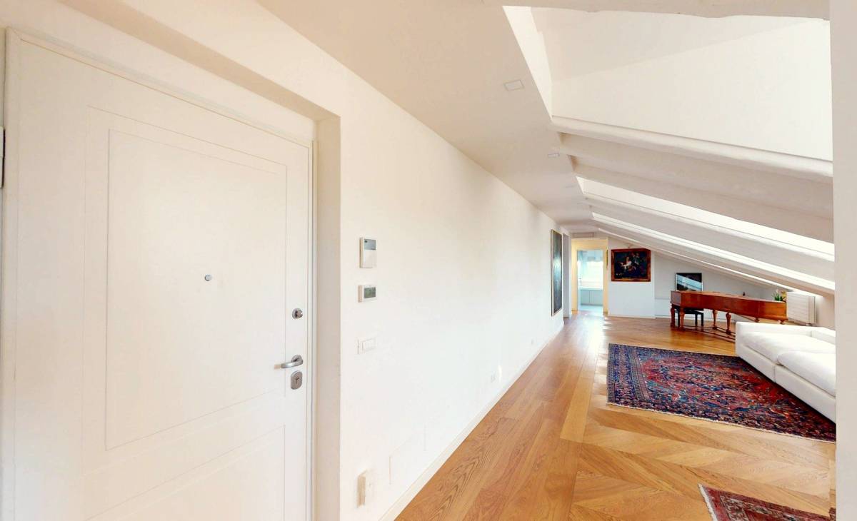 La proprietà occupa l’ultimo piano di un edificio storico di grande prestigio e, disegnata e realizzata nel 2018, si distingue come una delle soluzioni più rappresentative del centro cittadino.