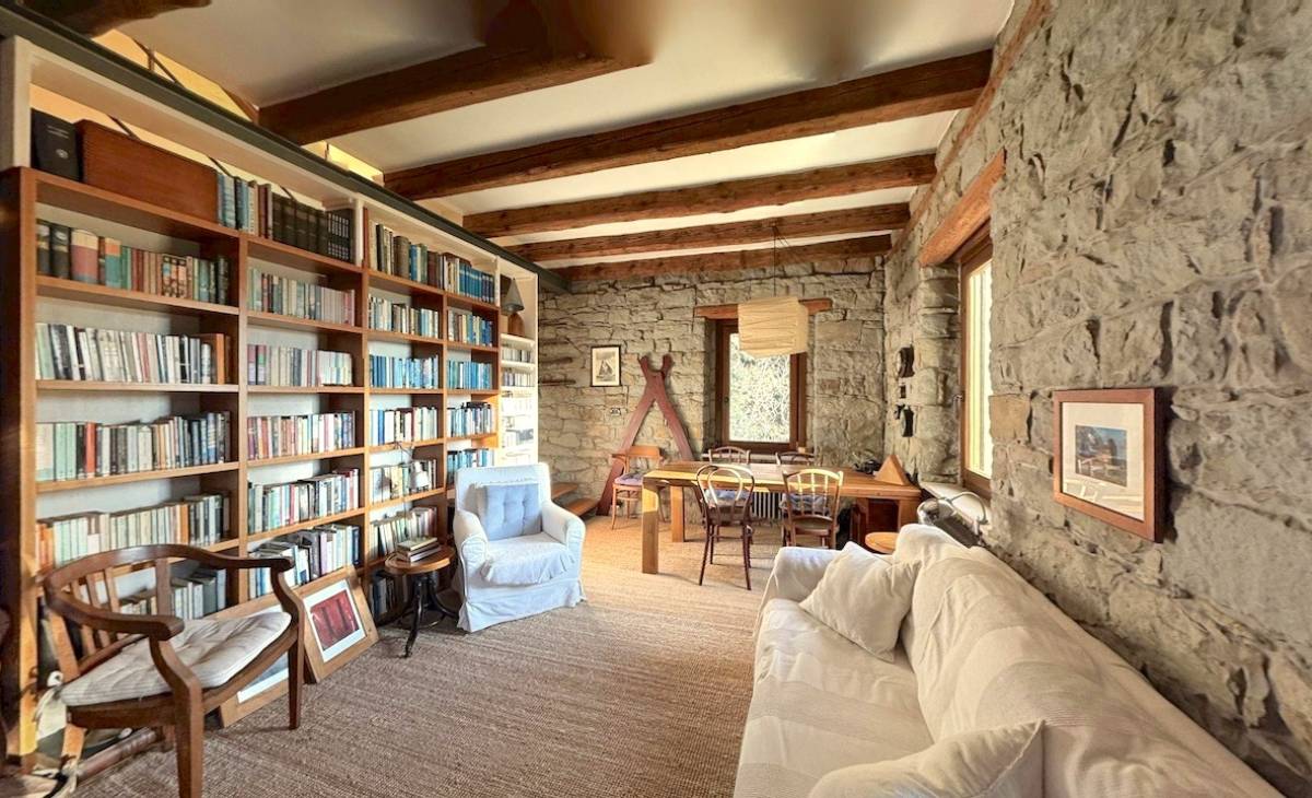 Al primo piano, l'atmosfera si fa intima e raffinata. La camera matrimoniale con travi a vista e cabina armadio regala il calore autentico delle case di una volta. Completano il piano, una camera adibita a studio, una seconda camera adibita a cabina armadio e un bagno finestrato con vasca, ideale per concedersi momenti di relax.